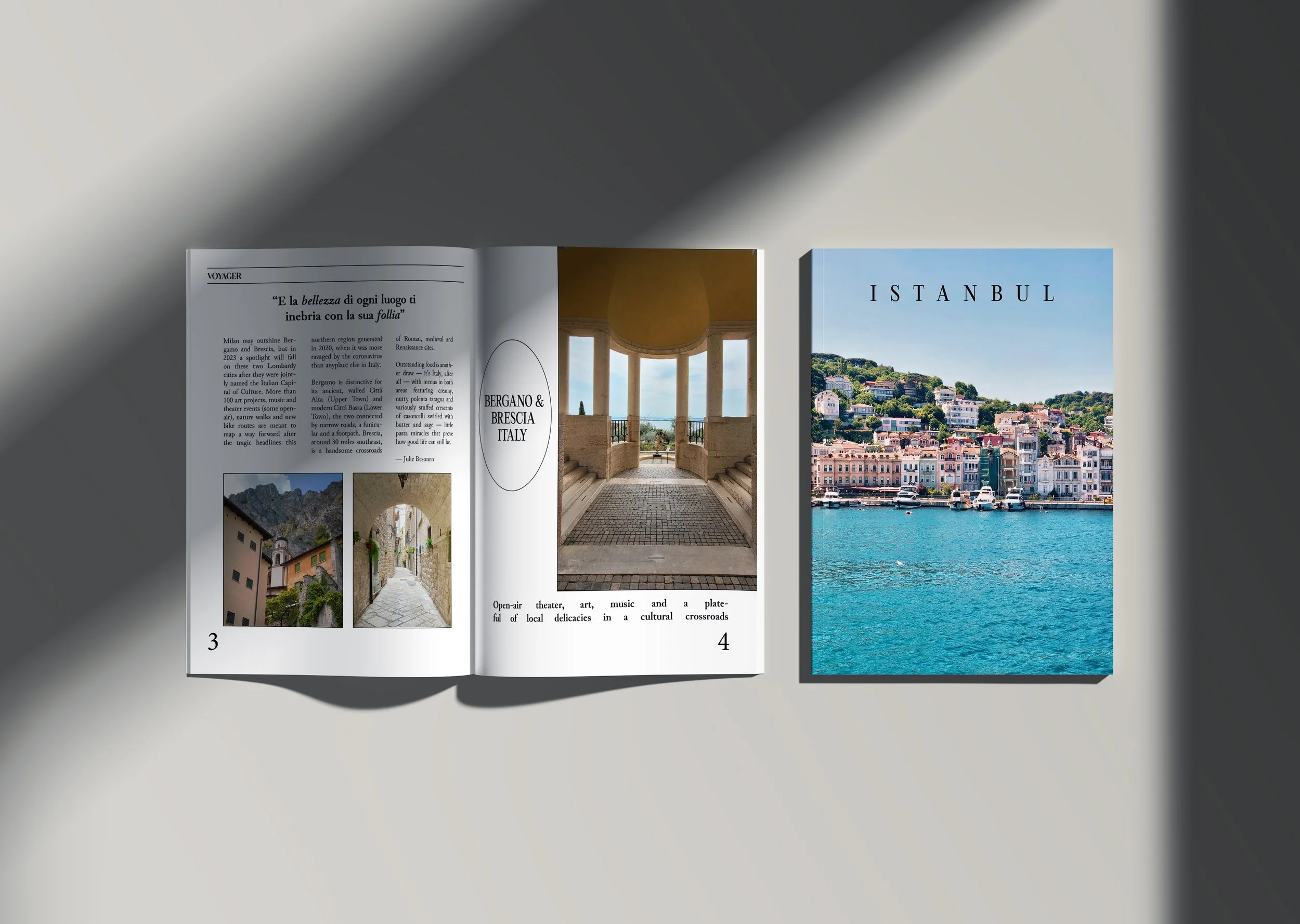 When crafting this magazine, we really wanted to infuse the desire of awakening your mind and body with traveling in every touch. The visuals are truly dripping with intention — from the alfresco-inspired captivating colors and fonts to the welcoming copy to the prismatic all across this magazine — the sense of excitement is communicated in every inch.